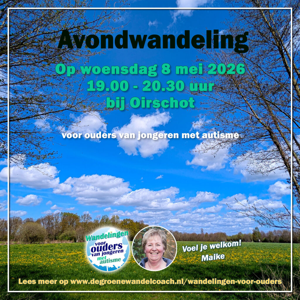 Speciaal voor ouders van jongeren met (een vermoeden van) autisme zijn er met regelmaat groepswandelingen, met een klein aantal mensen. Samen komen we verder!